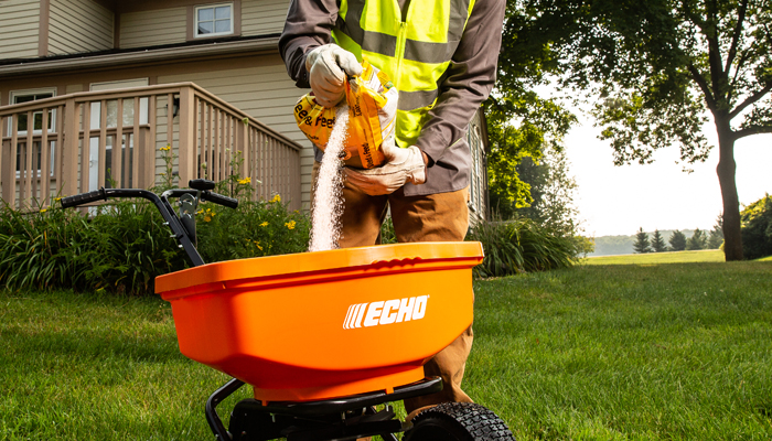 ECHO broadcast spreaders make fertilization efficient and as precise as possible. Spend less time guessing and more time enjoying your yard with routine, ongoing care, and tools that keep your lawn strong and beautiful all year. Get your ECHO broadcast spreader today.
