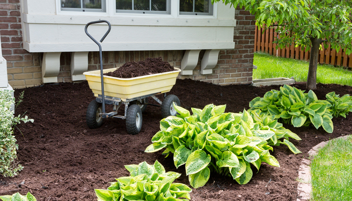 - A wheelbarrow or garden cart to transport heavy piles of mulch to the area you’re spreading