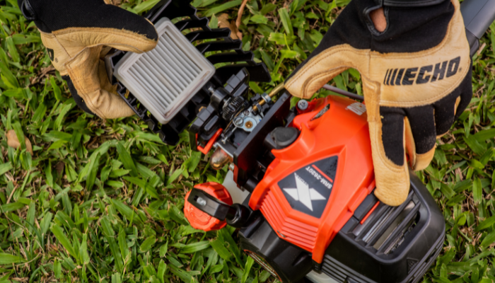 L’entretien du coupe-herbes ECHO commence par le système de filtration d’air. Le modèle 2620T est doté d’un couvercle de filtre à air sans outil — tourner la fixation du couvercle dans le sens antihoraire permet de le retirer sans tournevis ni clé. Cette conception facilite et accélère l’accès au filtre lors des entretiens sur le terrain.